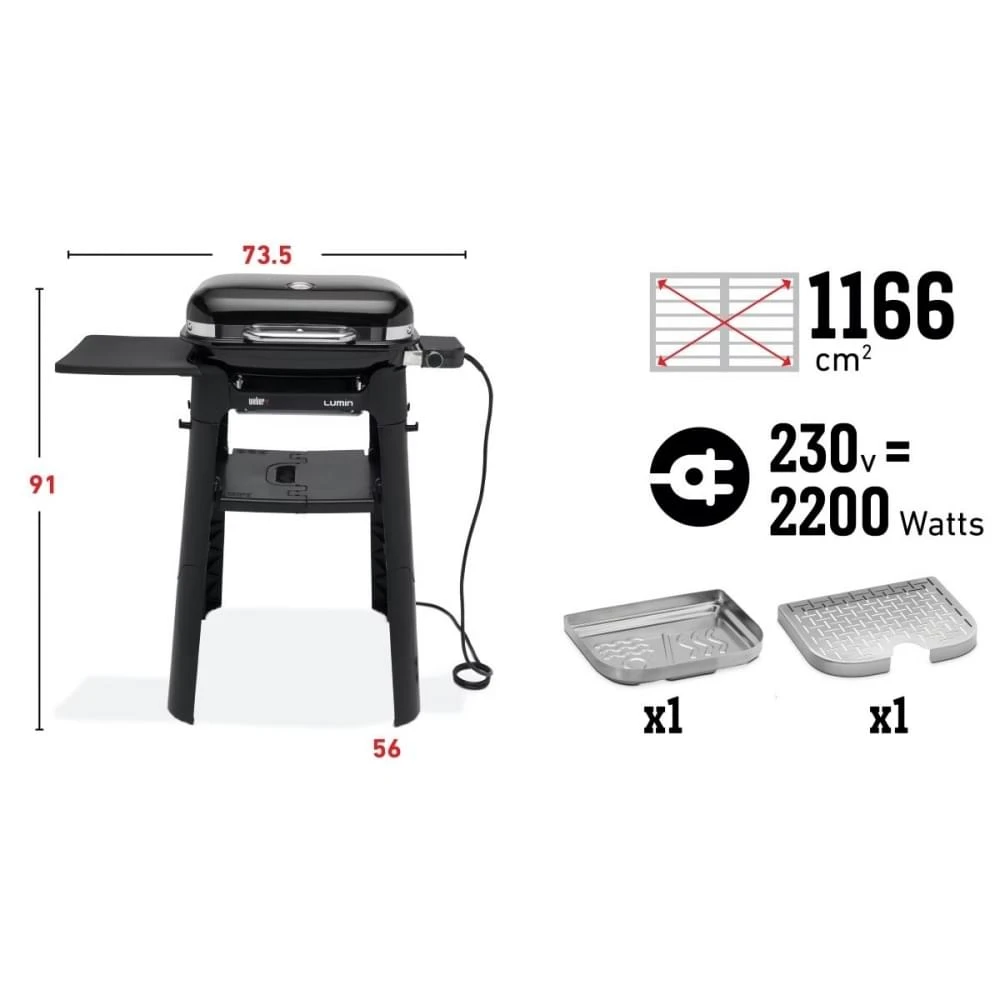 De Weber Lumin Compact is een multifunctionele Elektrische Barbecue die een temperatuur van maar liefst 315 °C kan bereiken. Dit betekend een hoogwaardig grillresultaat en de optimale BBQ smaak. Daarnaast houdt deze Lumin ook nog eens je eten lekker warm, wat natuurlijk erg handig is asl jij of je gasten nog een keertje extra willen opscheppen. De BBQ is voorzien van een handige thermometer, heeft een moderne en strakke vormgeving en het makkelijk uitvouwbare onderstel zorgt voor de het ultieme buitenkeuken gevoel. Uiteraard kun je de compacte krachtpatser ook gewoon als tafelmodel gebruiken. Ontdek ook de andere verschillende kookinstellingen zoals: Grillen, stomen, roken en koken, hij kan het allemaal met gemak.